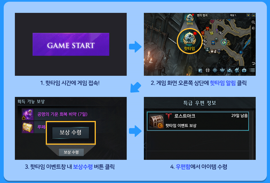 크리스마스 핫타임 이벤트 3일간 매일 공명의 기운약 도약의 정수 7일짜리 로스트아크 카테고리